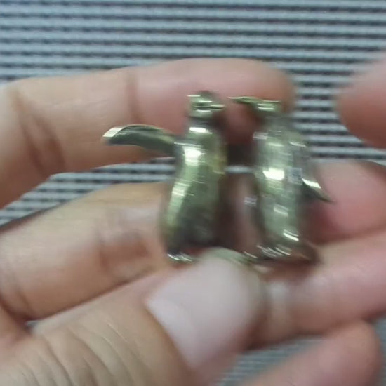 A pair of brass penguin figurines—one standing upright, the other with outstretched wings—both with textured feather details. Perfect as a cute decorative set.