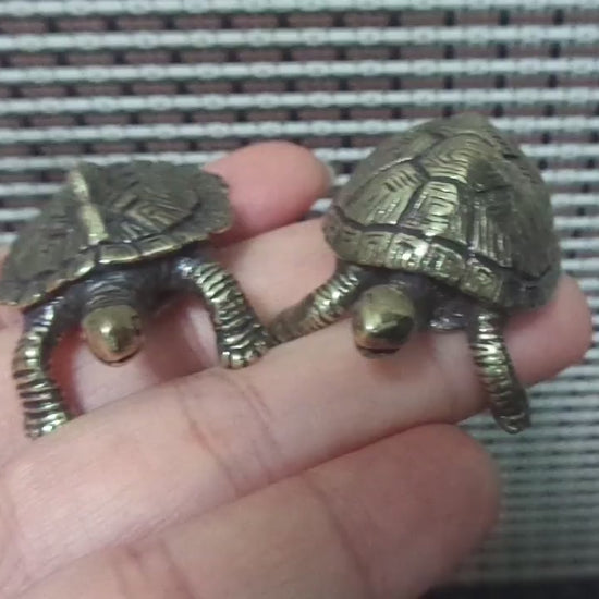 Pair of Vintage Style Solid Brass Longevity and Money Turtles Figurines Statues
