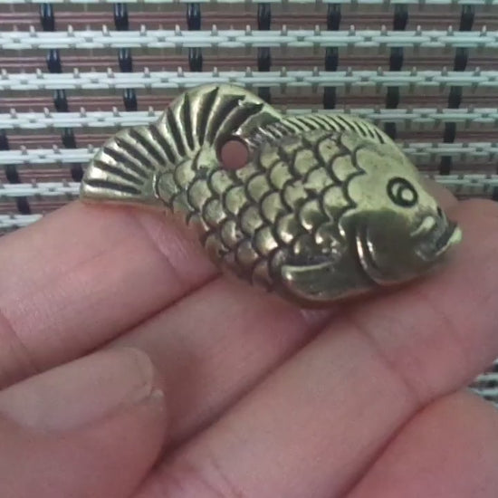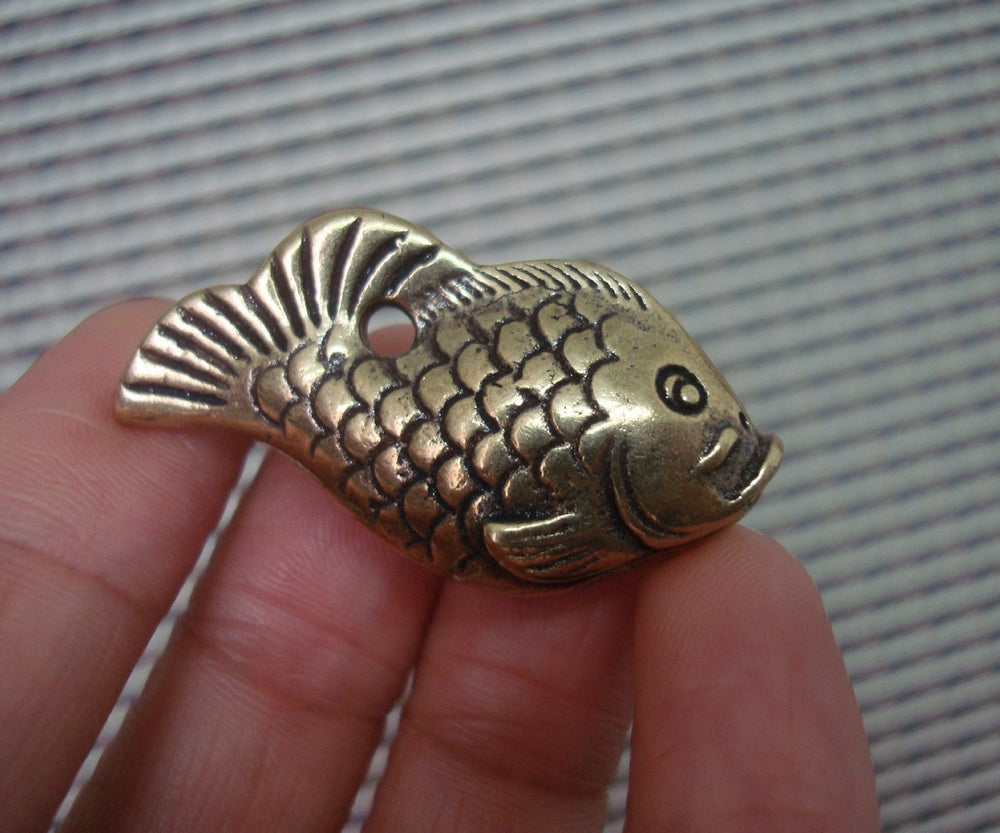 Solid Brass Koi Fish Charm Pendant Vintage Style Statue Ornament