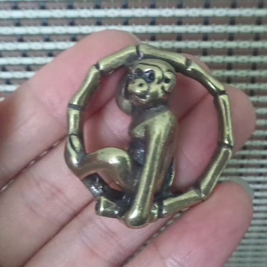 Solid Brass Monkey-in-Ring Pendant Vintage Style Statue Ornament