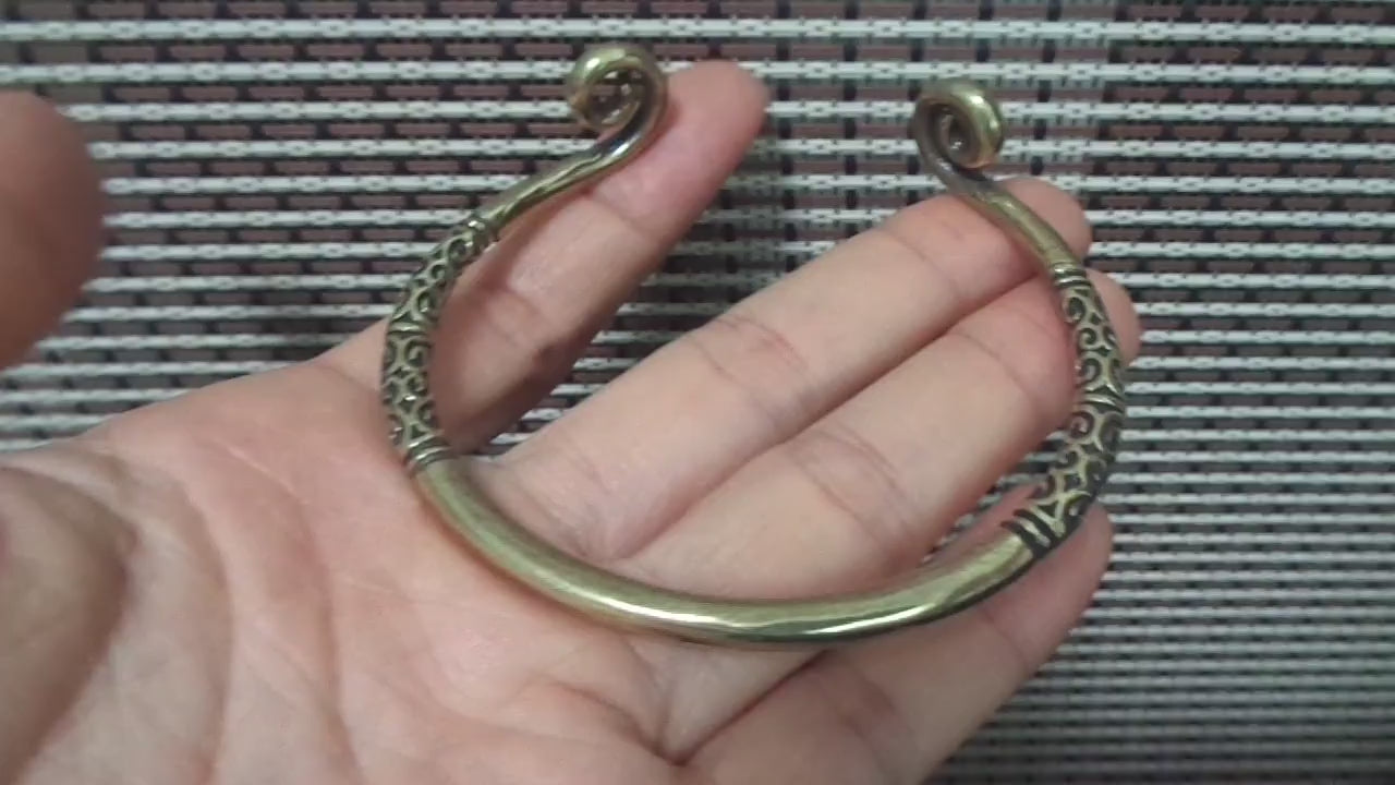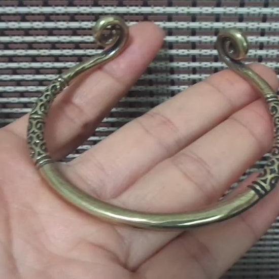 This exquisitely detailed brass cuff bracelet blends ancient tribal motifs with a polished, antique finish. Its open, adjustable design and ornate carvings make it a versatile statement piece, perfect for adding a touch of cultural intrigue to your everyday style.